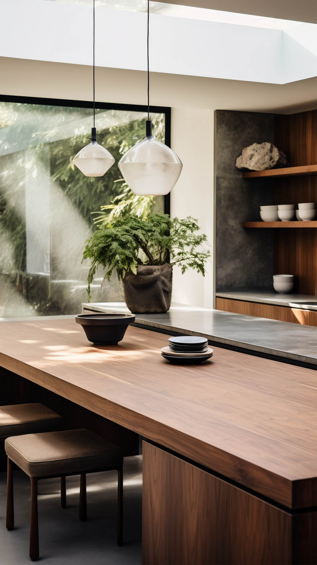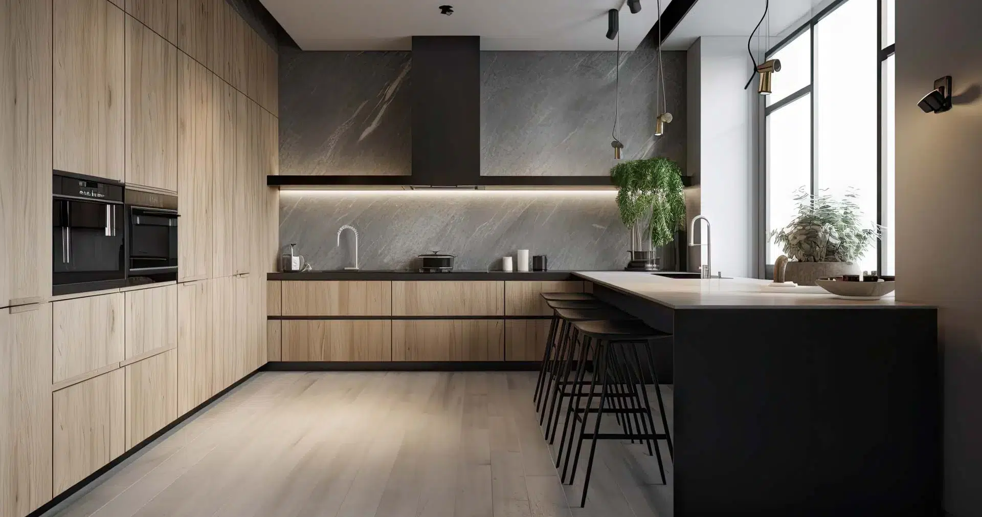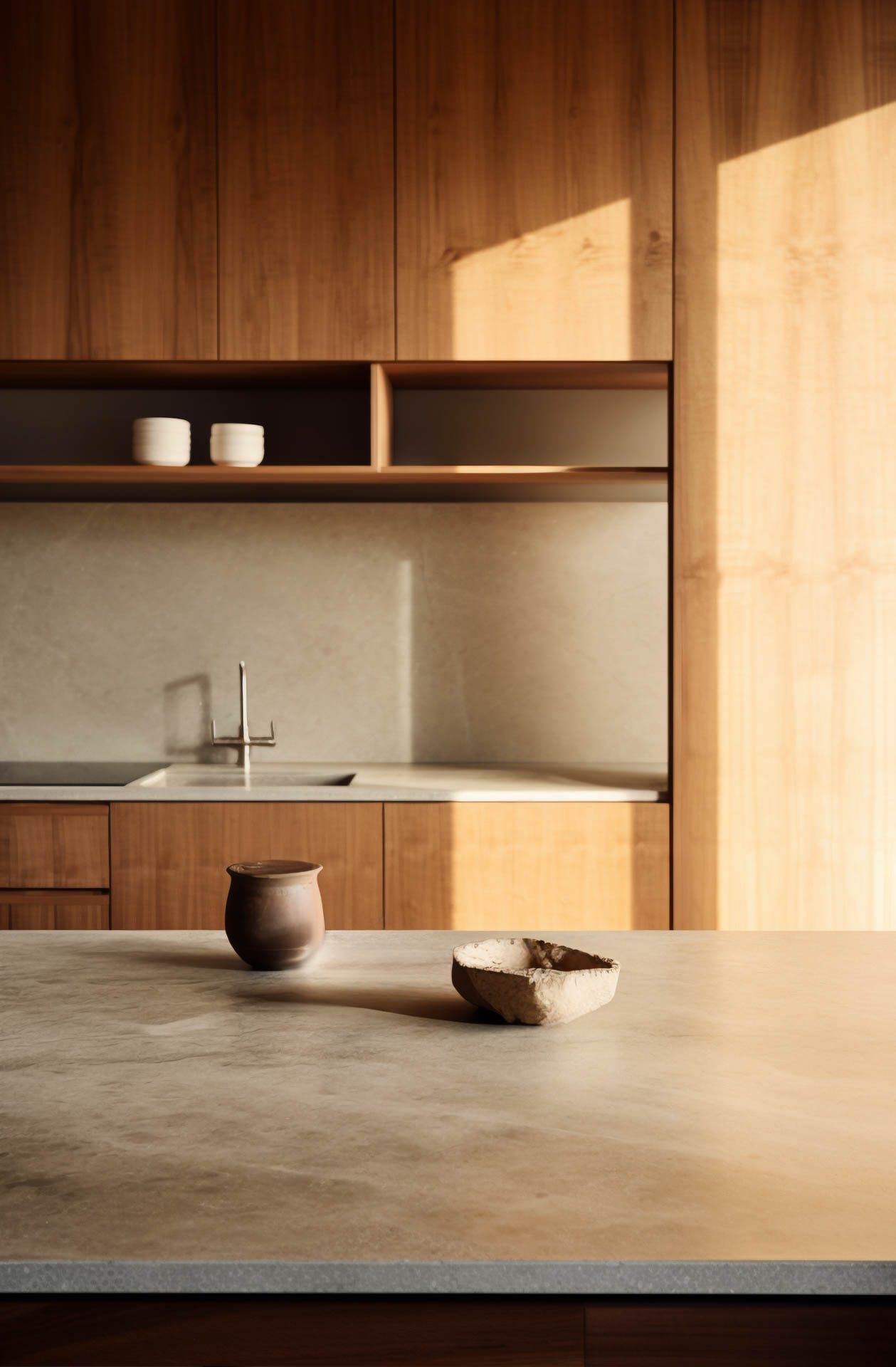 Bei der Auswahl des Materials für Ihre Arbeitsplatte, dem Herzstück Ihrer Küche, empfehlen wir hochwertige Naturmaterialien. Holz steht dabei an erster Stelle, aber auch Quarz oder Granit können die japanisch-skandinavische Ästhetik in Ihrer Küche zum Leben erwecken. Die einzigartigen Maserungen von Stein und Holz verleihen Ihrer Küche eine beruhigende Wärme, die den Einklang mit der Natur ebnet. Mit der richtigen Pflege bleibt Ihnen dieses robuste Material besonders lange erhalten.